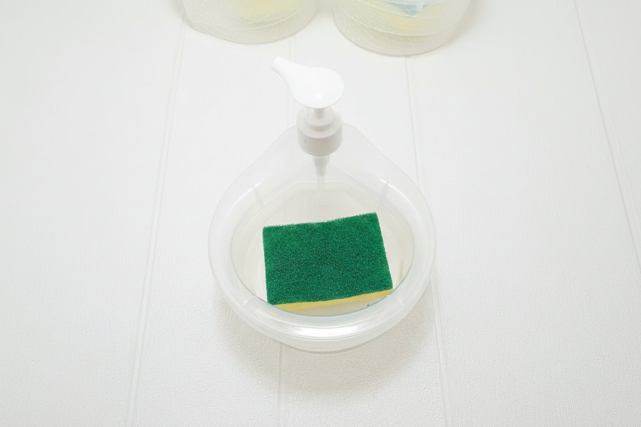 Simply place your sponge on top and press down to instantly apply soap. No more messy bottles, spills, or wasted detergent.